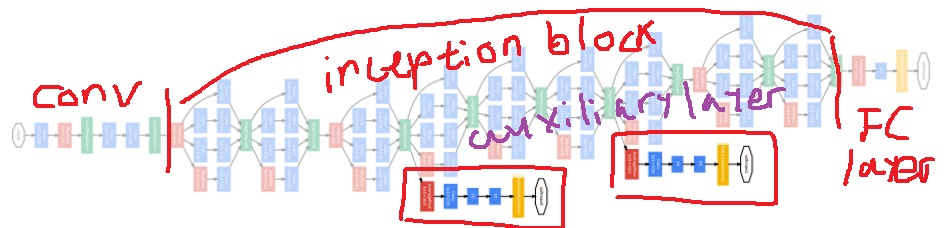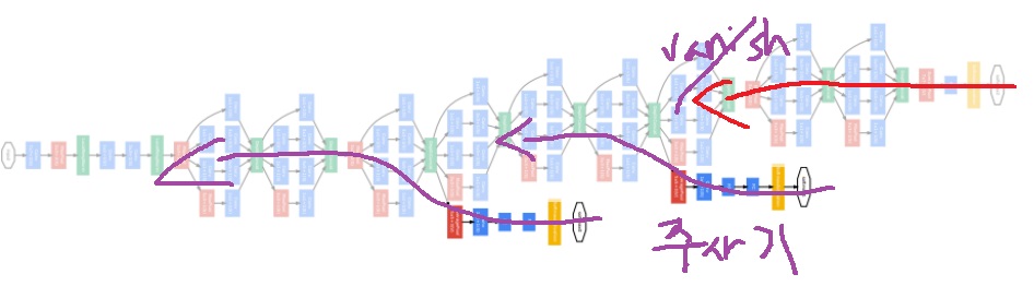 여기서 주목할 점은 중간에 auxiliary classifier를 사용했다는 점이다.