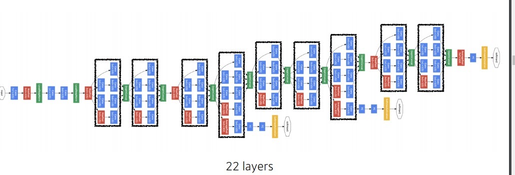 5*5 CONV나 3*3 CONV에 들어가기 전에 1*1 CONV를 넣으면서 parameter 수를 감소시킨 것이 중요한 아이디어다.