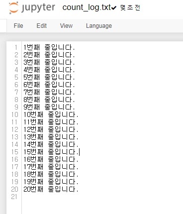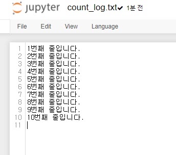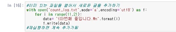 위 코드로 append모드('a' 모드)에서 글을 써내려가면
