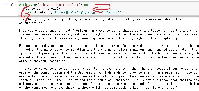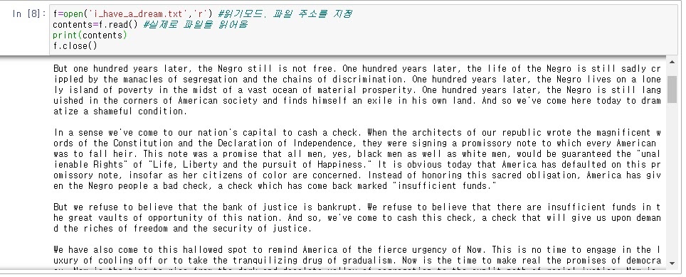 i_have_a_dream 파일을 읽기모드로 읽어 f라는 객체에 저장하여