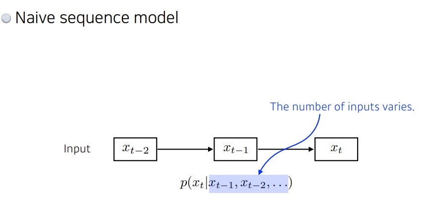 과거 모든 정보의 적절한 함수를 잠재변수 ht라 하면 이것은 0,1,2,3,....,t-1까지의 정보를 요약해서 가지고 있는 변수
