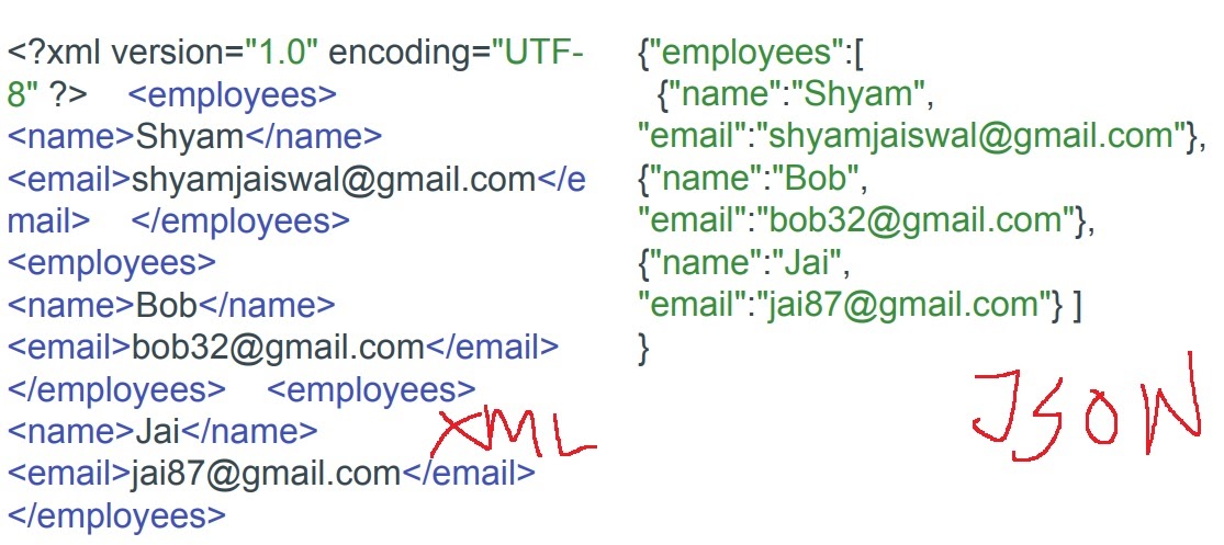 왼쪽이 xml이고 오른쪽이 json으로 동일한 내용을 표시하는데