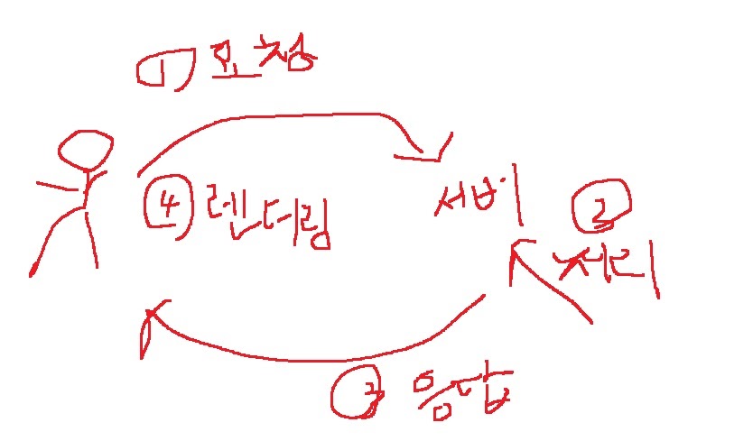 사람이 서버에 여러가지 요청을 하면 서버는 데이터베이스를 처리하는 등 여러 요청에 대응함