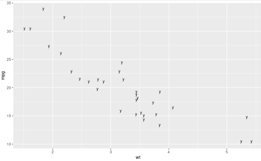 > p + geom_point(shape='y',size=3)