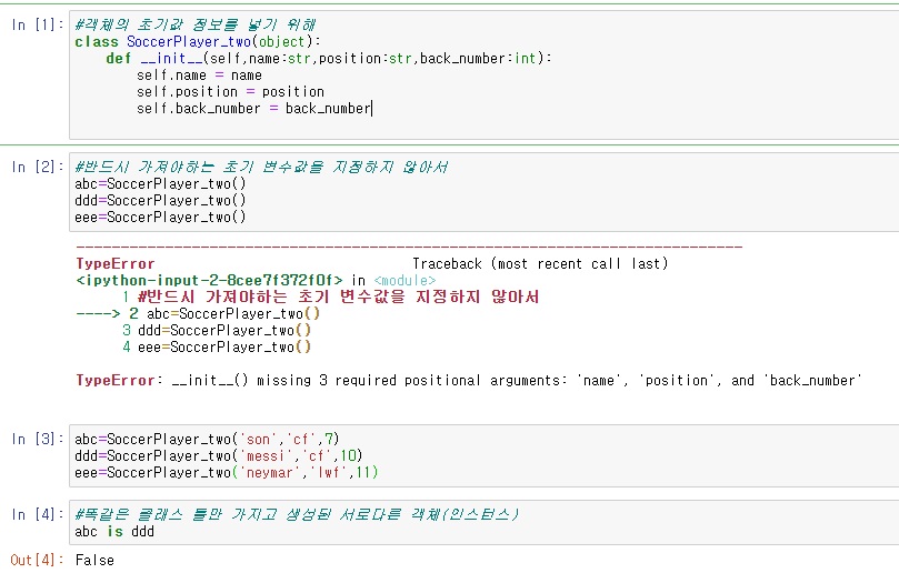 __init__이 있는경우 초기값을 지정하지 않으면 에러가 남