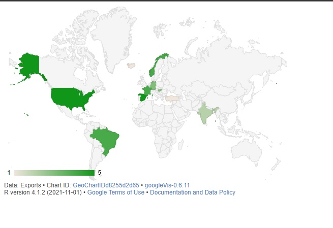 > g9 <- gvisGeoChart(eq,'loc', 'DEPTH', 'MAG', options=list(displayMode='Markers', colorAxis="{colors:['purple','red','orange','grey']}",