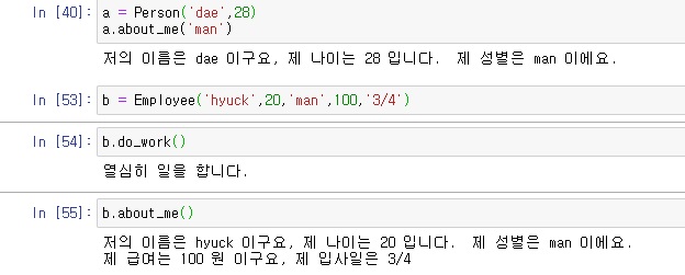 자식의 about_me에서는 gender를 입력받지 않아서 class의 속성값을 그대로 가져와서 출력했음
