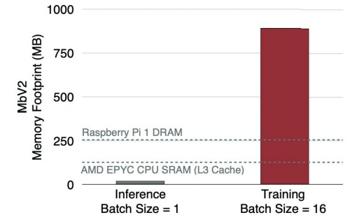 inference 메모리 크기는 edge device들이 보통 커버할 수 있는데 training 메모리 크기를 커버하기는 거의 불가능할 정도