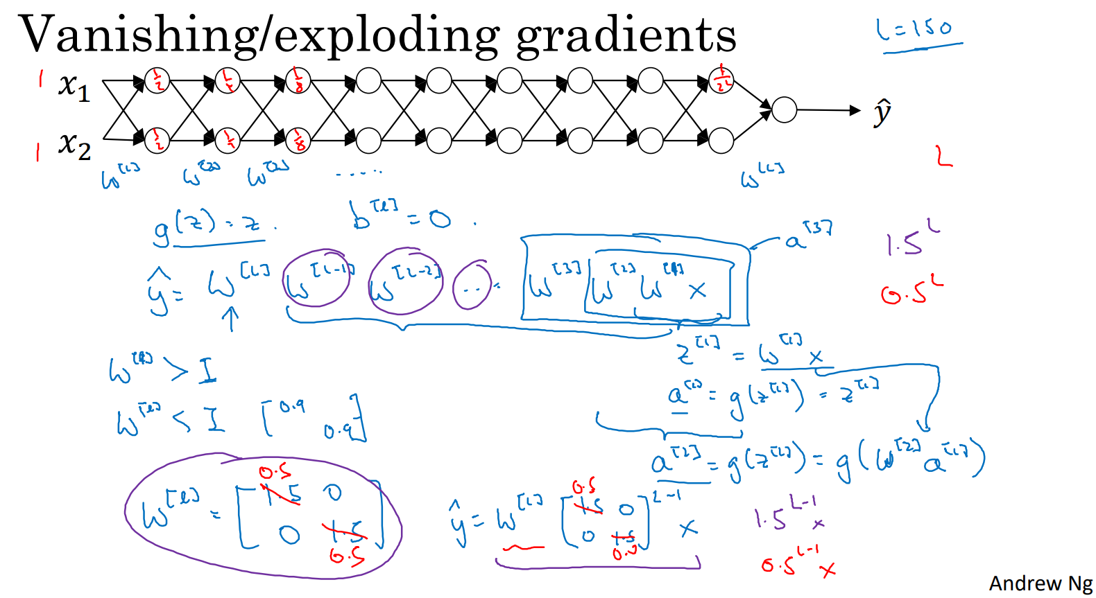 하지만, 1보다 조금이라도 크다면 weight들을 많이 곱할수록 매우 커진다.