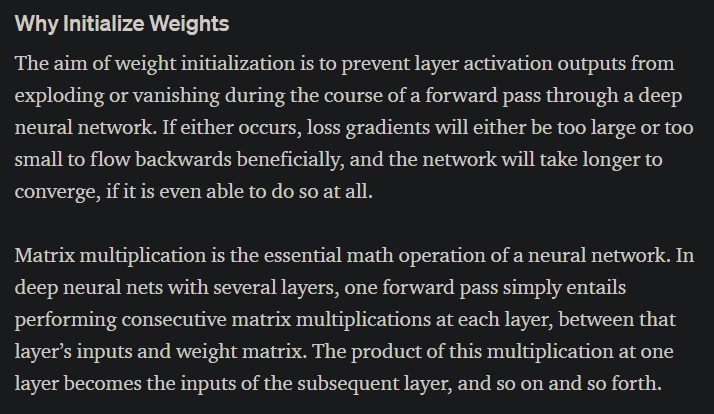 그러다보니 weight들을 처음에 어떤 값들로 시작하는게 딥러닝 학습에 좋을지 연구자들이 많이 연구하였다.