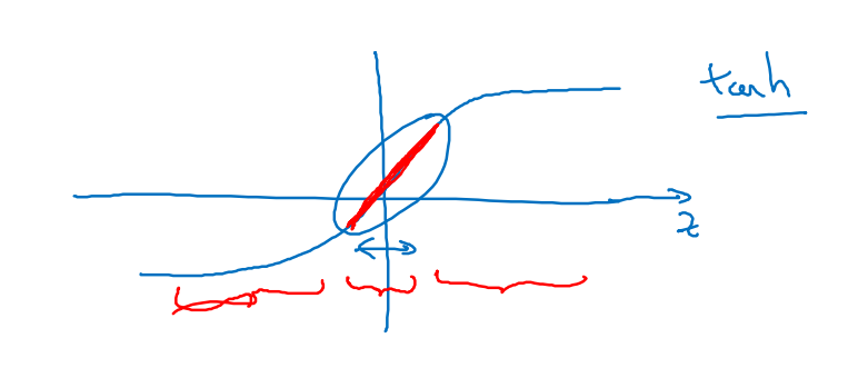 sigmoid나 tanh같이 x가 0 근처일때, 선형에 가까운 함수인 경우 효과적이다.