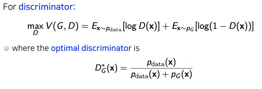 고정된 generator에 대하여 discriminator를 최소화하는 최적의 discriminator는