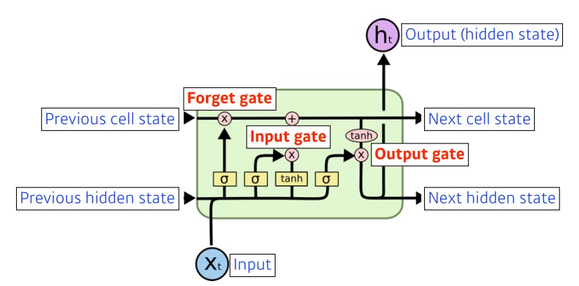 아래 그림 보면 알겠지만 $h_{t-1}$와 $x_{t}$가 forget gate로도 들어가고 input gate로도 들어가는거