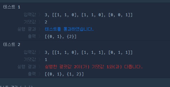 단순하게 연결된것만 찾아버리면 {0,1,2}로 연결시켜야할 것을 {0,1}, {1,2}로 나눠버리기 때문에