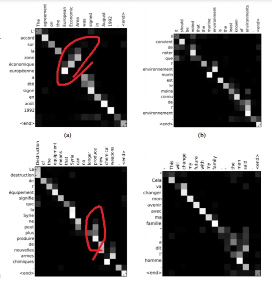 네트워크가 어떤 단어에 조정(alignment)하면서 번역해야하는지 스스로 배운다는점에서 흥미롭다.