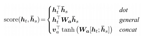 Luong과 Bahdanau는 score를 계산하는 방식에 있어서 여러가지를 제안했다.