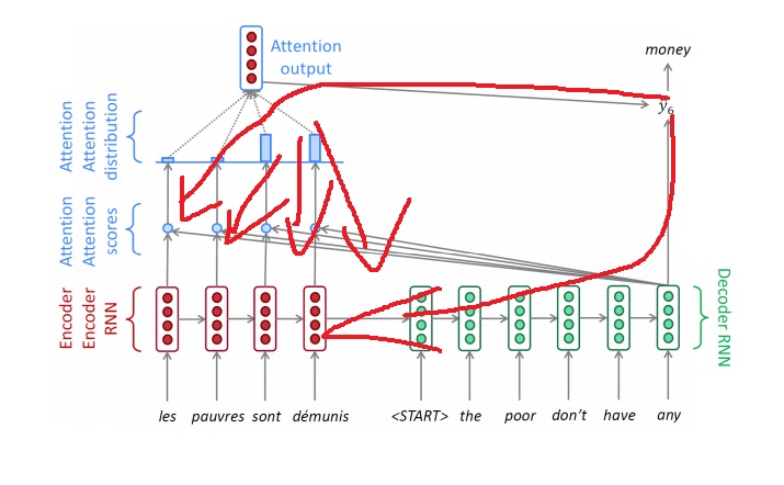 attention의 가중치(attention distribution, attention모듈에는 가중치가 없는데? 근데 이놈들은 결국 encoder의 가중치랑 decoder의 가중치에 영향을 받겠지)를 잘 학습하도록 backpropagation에 의한 gradient가 attention module로도 흘러들어감