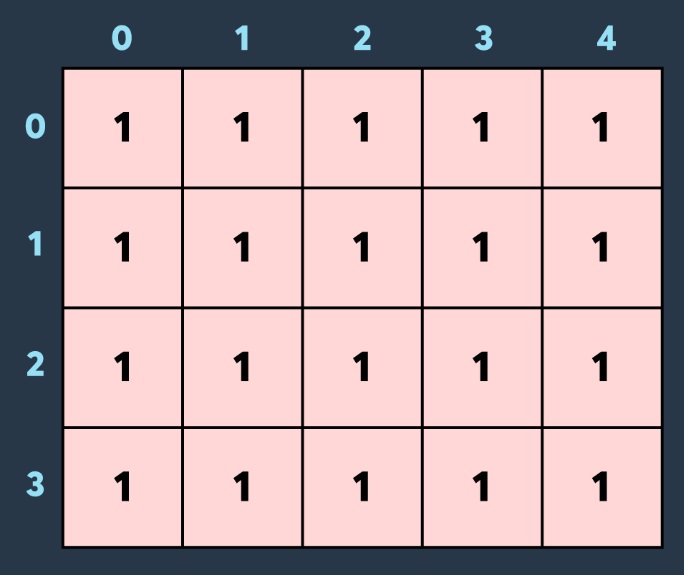 그렇게 할려면 1부터 n까지 row index를 순회하고 0부터 m까지 column index를 순회한 다음에
