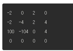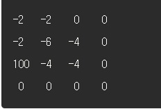 1. (1,1)부터 (2,2)까지 -4만큼의 변화를 줘야 합니다. 위에서 설명한 공식대로 (1,1)과 (3,3)에 -4, 배열의 (1,3)과 (3,1)에 4만큼의 변화를 줍니다.