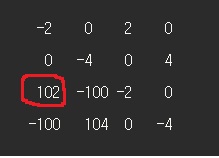 그래서 배열의 (0,0)과 (2,2)에 -2를 배열의 (0,2)와 (2,0)에 2만큼 변화를 준다