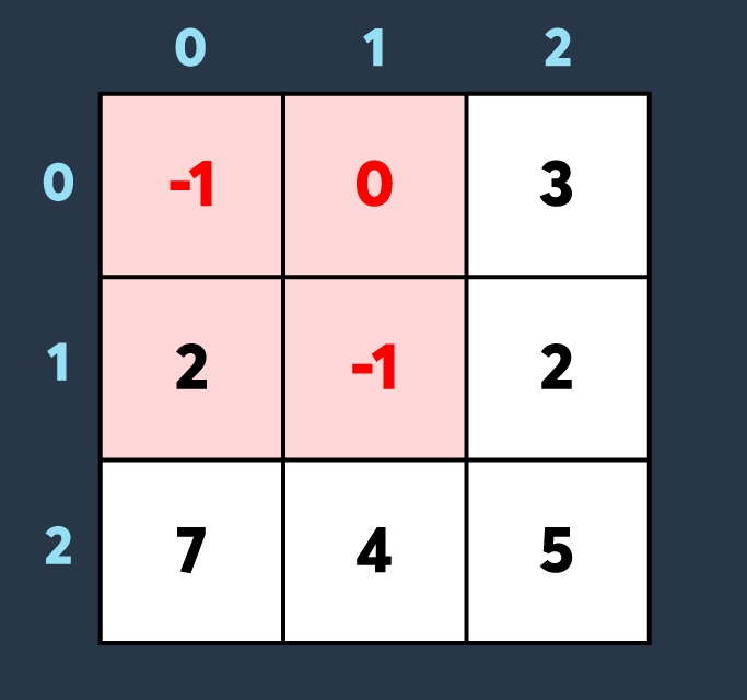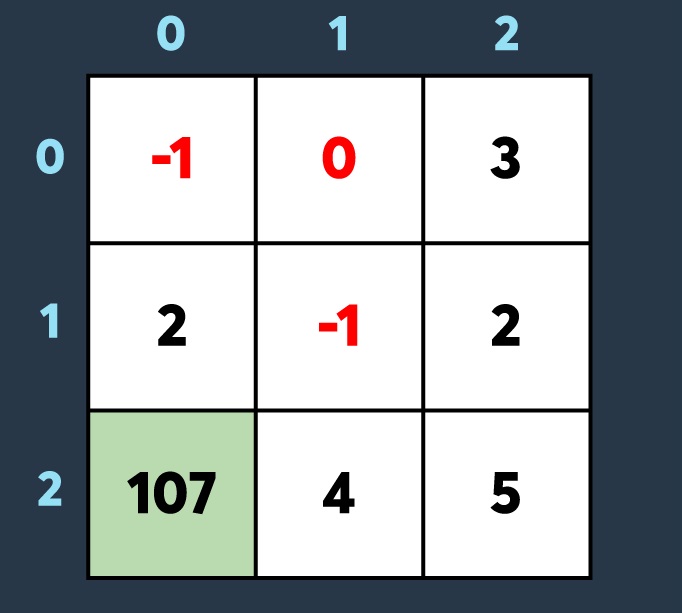 [[-1, 0, 3], [2, -1, 2], [107, 4, 5]]