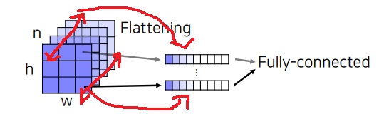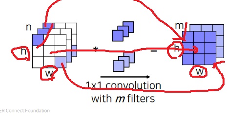 1*1 convolutional filter을 사용하면 각 pixel 위치의 채널축 flatten vector를 하나의 점으로 그 위치 그대로 가져온다