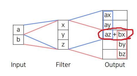 이 과정에서 사용한 convolution matrix의 역행렬을 transposed convolution matrix로 정의하고 output을 구한 뒤 이것을 reshape하면 원하는 형태로 얻는다