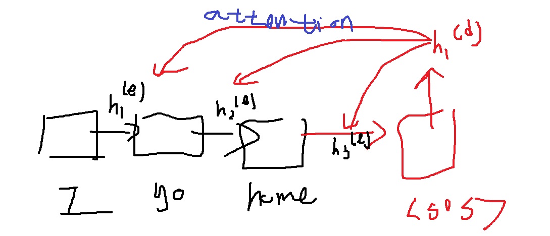 x1,x2,x3가 특별하게 변형된 각각의 key vector k1,k2,k3와의 내적을 이용했는데 seq2seq의 encoder의 hidden vector 역할을 한다