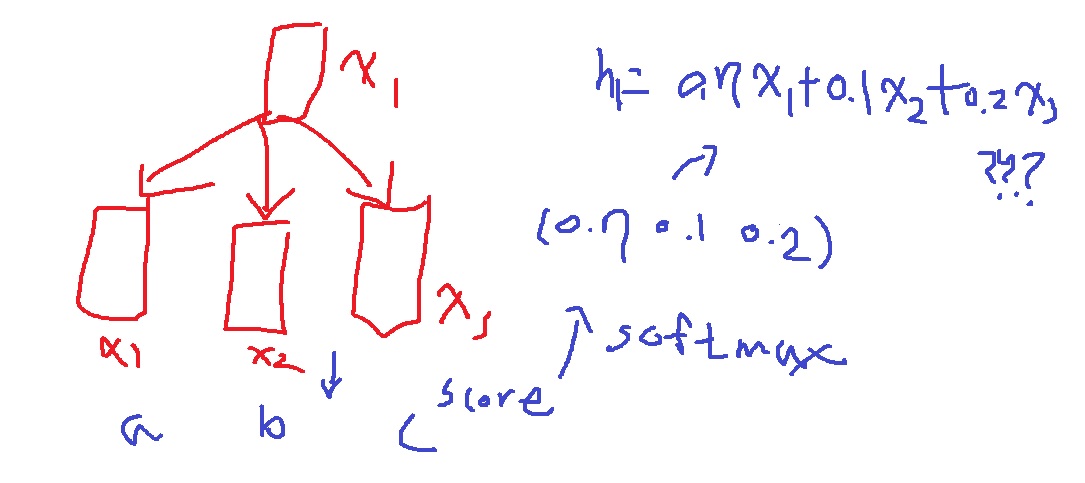특히 x1이 또 들어간다는 점에 주목하라. x1과 x1,x2,x3 사이 attention이지 x1과 x2,x3 사이 attention이 아니다.