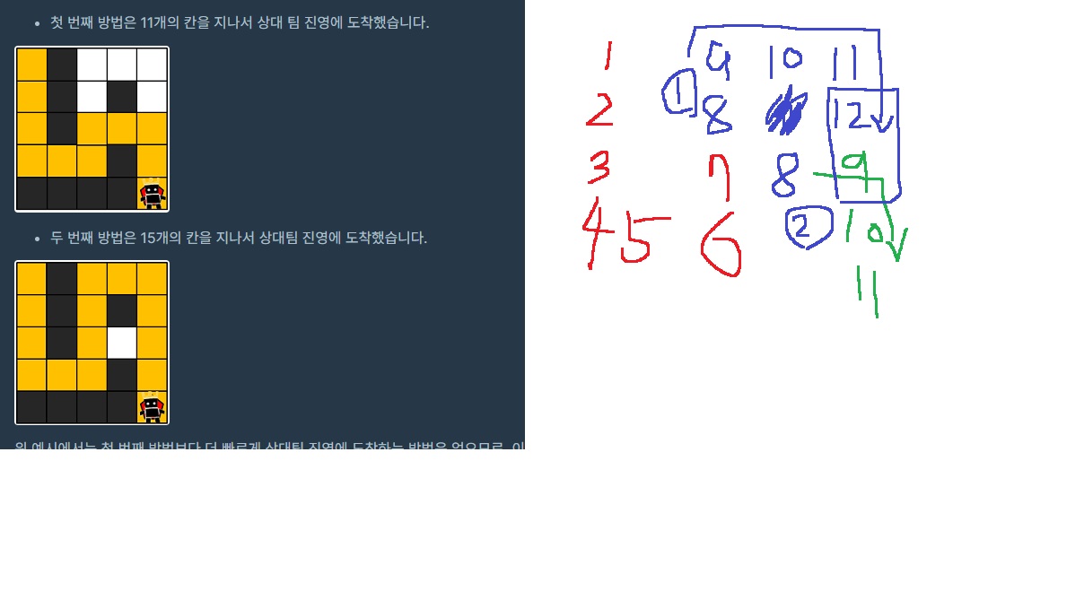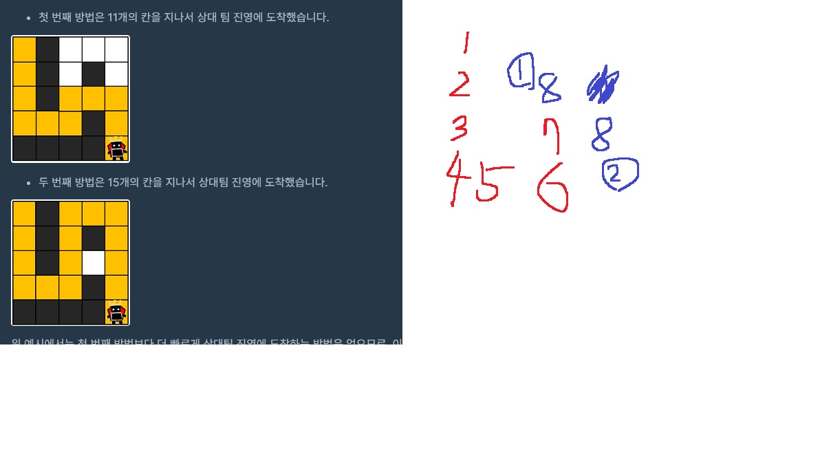 단 상대 팀 진영에 도착할 수 없을 때는 -1을 return해주세요.