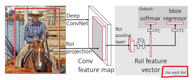 region proposal 영역을 feature map에 그대로 projection 시킨다. 그러니까 feature map에 bounding box의 위치를 표시하겠다 이거다.