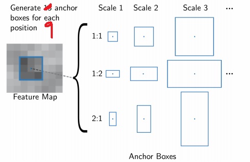 spatial map의 중앙 포인트마다 총 k개의 anchor box를 각각 생성한다. k는 hyperparameter로 논문에서는 k=9