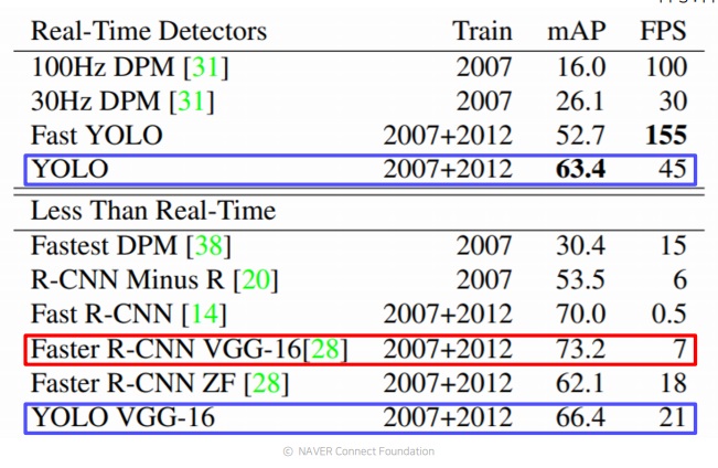 two stage detection 알고리즘인 Faster R-CNN보다 성능은 조금 떨어졌다