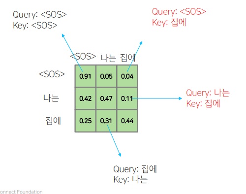 input sequence과정에서 attention을 위한 query, key,value를 만드는데 query, key의 내적 결과가 다음과 같다면