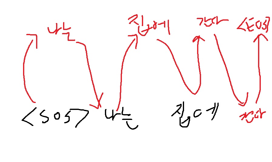 '나는'을 input으로 넣어주면 '집에'가 나오길 바란다. 그런식으로 학습을 시킨다.