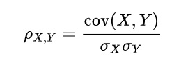 두 변수 X,Y의 선형적 관계(linear relationship)의 측도