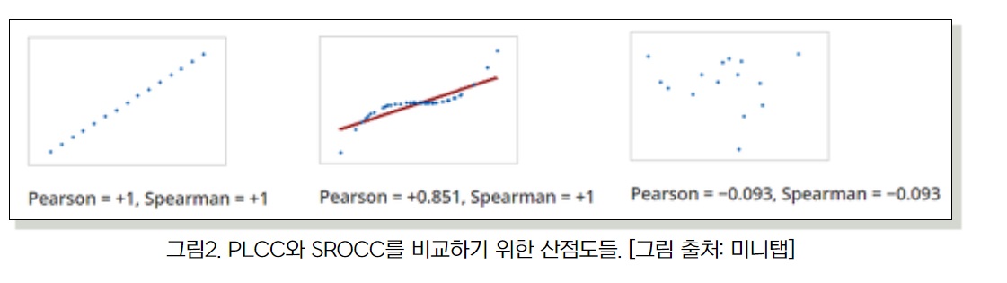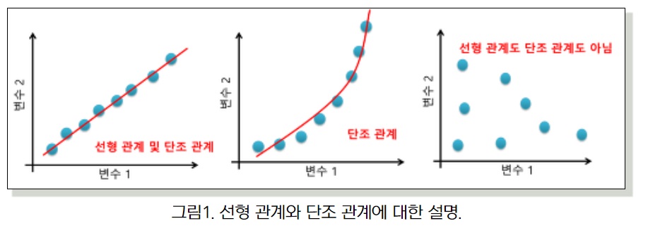 선형적관계를 봐야할지, 단조적 관계,비선형적 관계를 봐야할지, 종합적으로 고려해서 사용해야할듯?