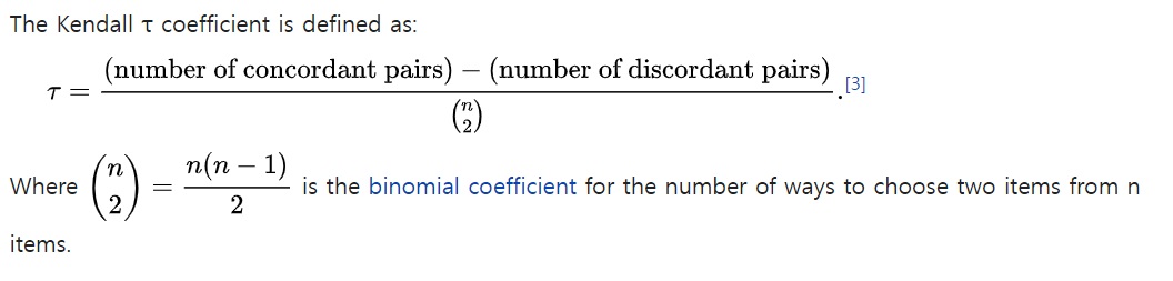 concordant라는 것은 $i<j$에서 $(X_{i},X_{j})$, $(Y_{i},Y_{j})$에 대하여 $X_{i} < X_{j}, Y_{i} < Y_{j}$를 만족시키거나