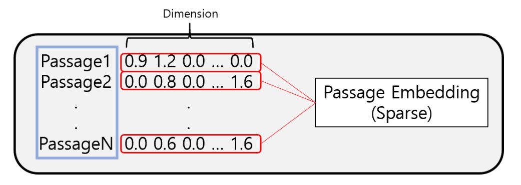 그리고 sparse embedding과는 다르게 한번 구축해놓으면 다른 passage가 들어와도 굳이 안바꾸고 들어온 passage만 embedding이 가능함