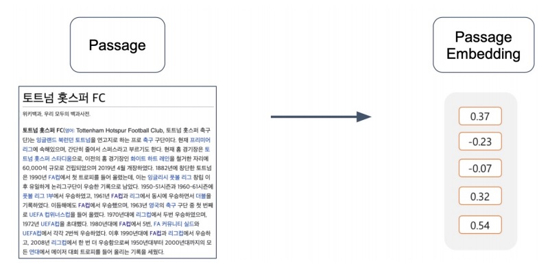 passage embedding은 문서를 벡터로 변환하는 것이다.