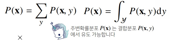 위와 같이 X=x에 대해 y의 총합을 구해 주변확률분포를 구할 수 있다