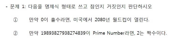 이를 많은 사람들이 받아들이지 못하지만 p → q가 참이어야 제대로 된 논리학을 만들 수 있다
