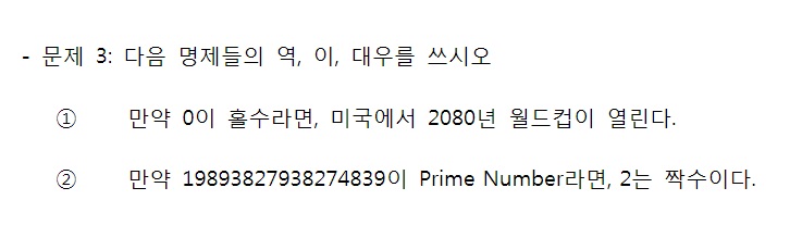 왜냐하면 p: 0이 홀수이다에서 0은 홀수가 아니므로 p는 반드시 거짓이다