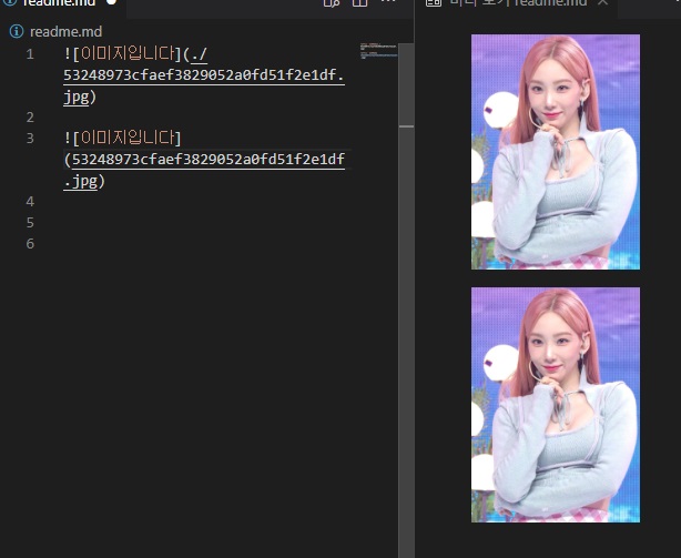 vscode에서 할 경우에는 반드시 삽입하고자 하는 이미지 파일을 디렉토리에 넣은 후에