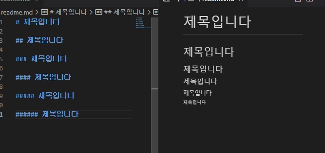 #의 개수는 1개부터 6개까지 가능하며 많이 쓸수록 글씨 크기가 작아짐