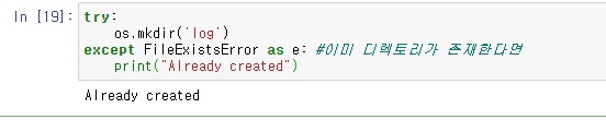 os.mkdir(‘log’)하면 작업디렉토리에 ‘log’ 폴더 생성
