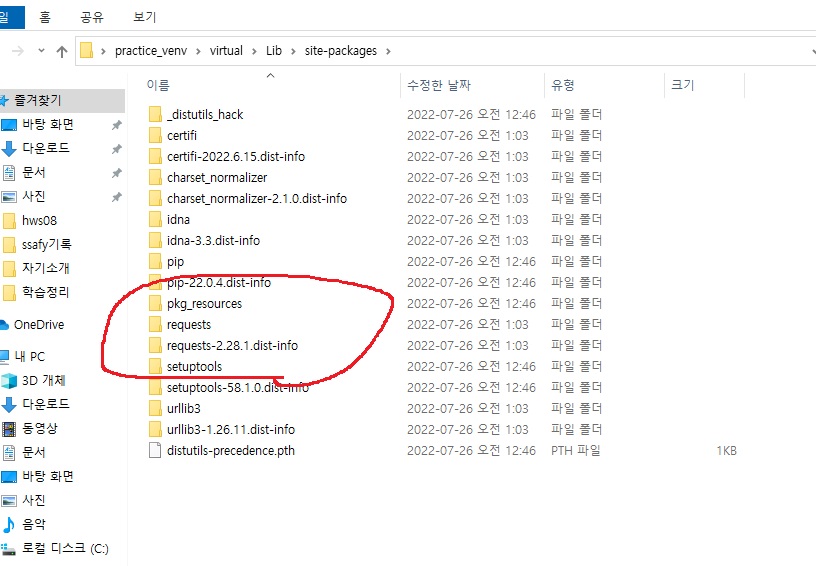 가상환경 virtual안에 생성된 폴더들
