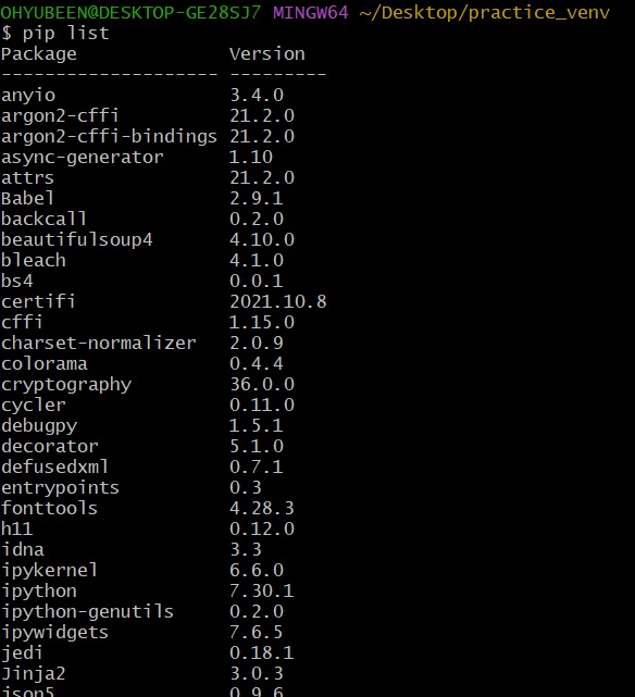 $ pip list 하면 현재 폴더에 설치된 패키지 리스트를 확인