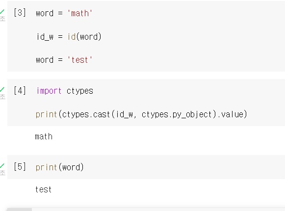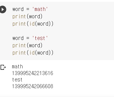 파이썬은 변수에 값 'math'가 들어가는게 아니라 그것을 가리키는 주소가 들어간다고함