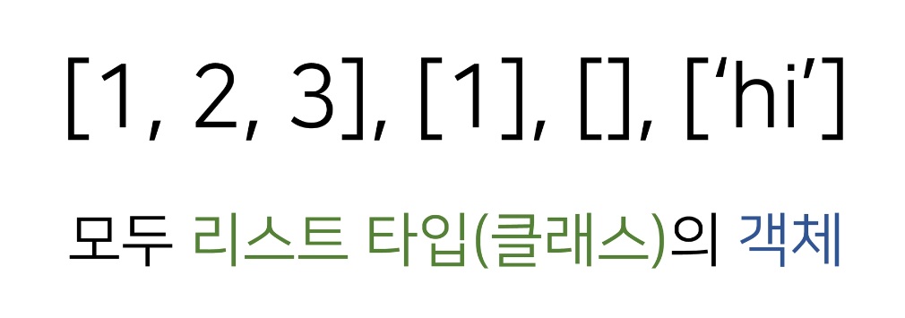 실제 사례인 객체 [1,2,3],...,[],...,['hi']등을 만들기 위한 클래스가 list였다 이 말